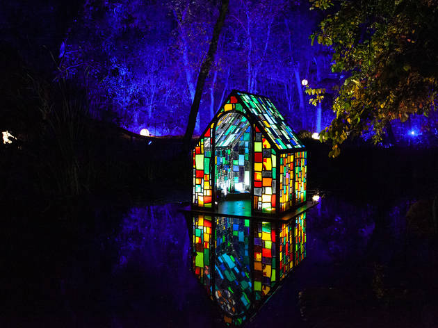Descanso Gardens' 'Enchanted: Forest of Light' - Los Angeles Times Visitors walk through "Enchanted: Forest of Light," a one-mile walk through eight distinct lighting displays in Descanso Gardens. (Francine Orr / Los Angeles Times)