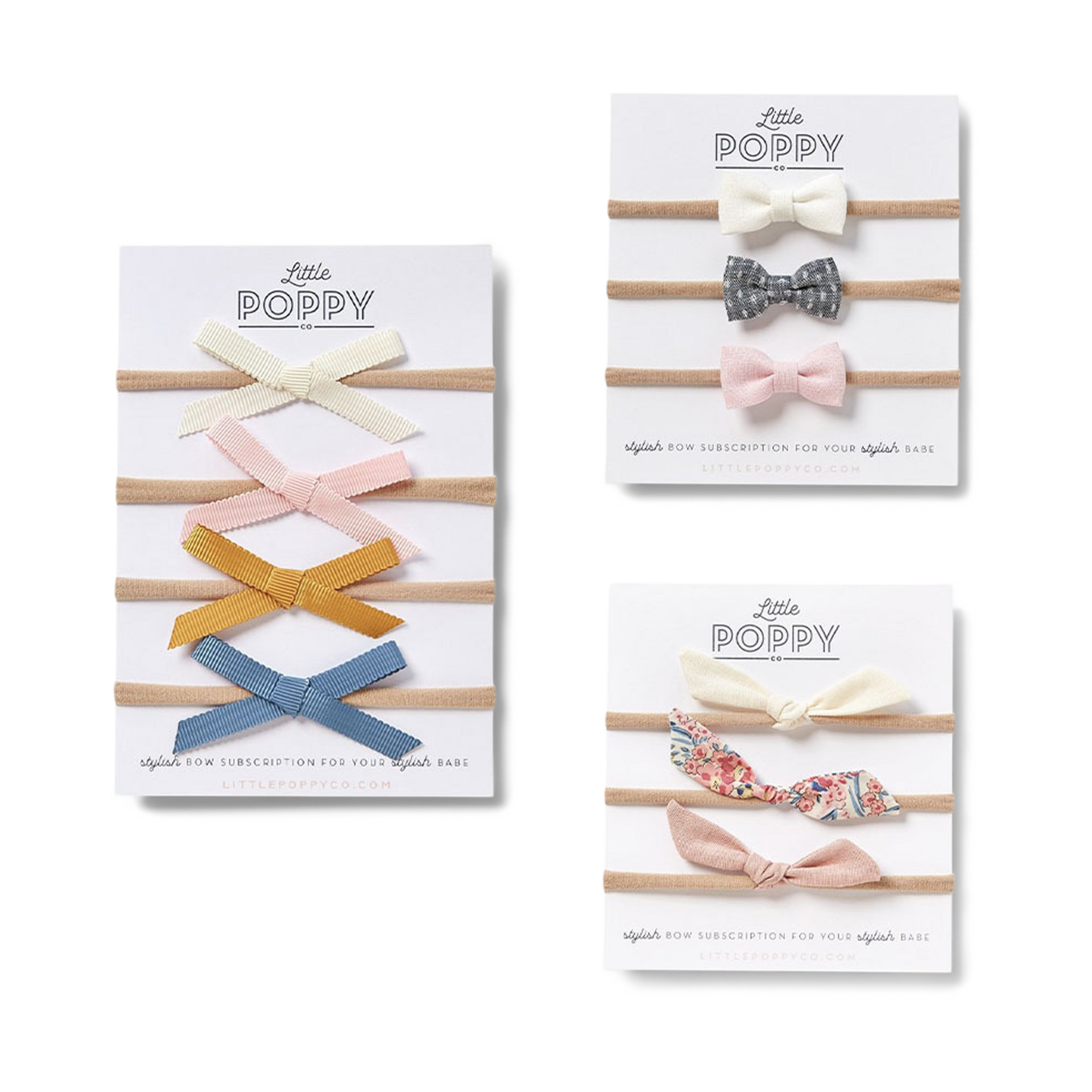 Little Poppy Co. | Find Subscription Boxes From $11.99. Kid's Fashion. Box website. Post a comment. Send by email. Get stylish bows for babies delivered straight to your door with Little Poppy Co. We provide your stylish babes with three stylish bows every single month. We literally pour our hearts into each set of bows. All bows are handmade with love and always simple, classic & trendy.