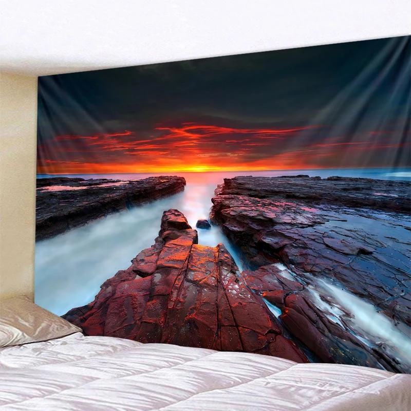 Sea view sunrise sunset tapestry wall hanging bohemian home background wall aesthetics living room bedroom wall decoration