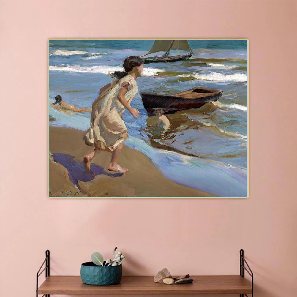 Joaquin Sorolla "Little girl entering the sea" Canvas Oil Painting Art Picture Aesthetics Wall Decor Home Living Room Decoration
